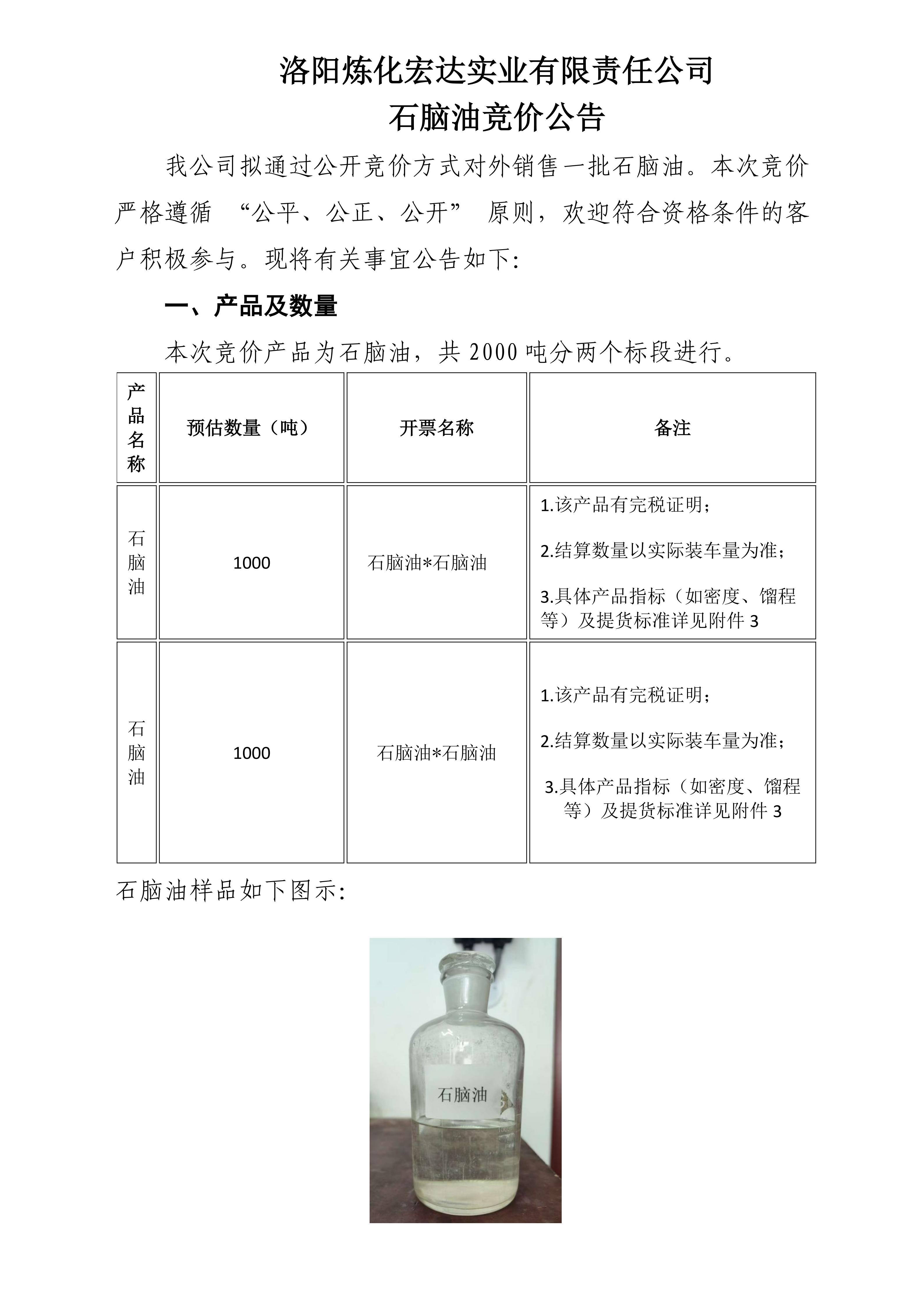 洛陽煉化宏達實業有限責任公司石腦油競價公告